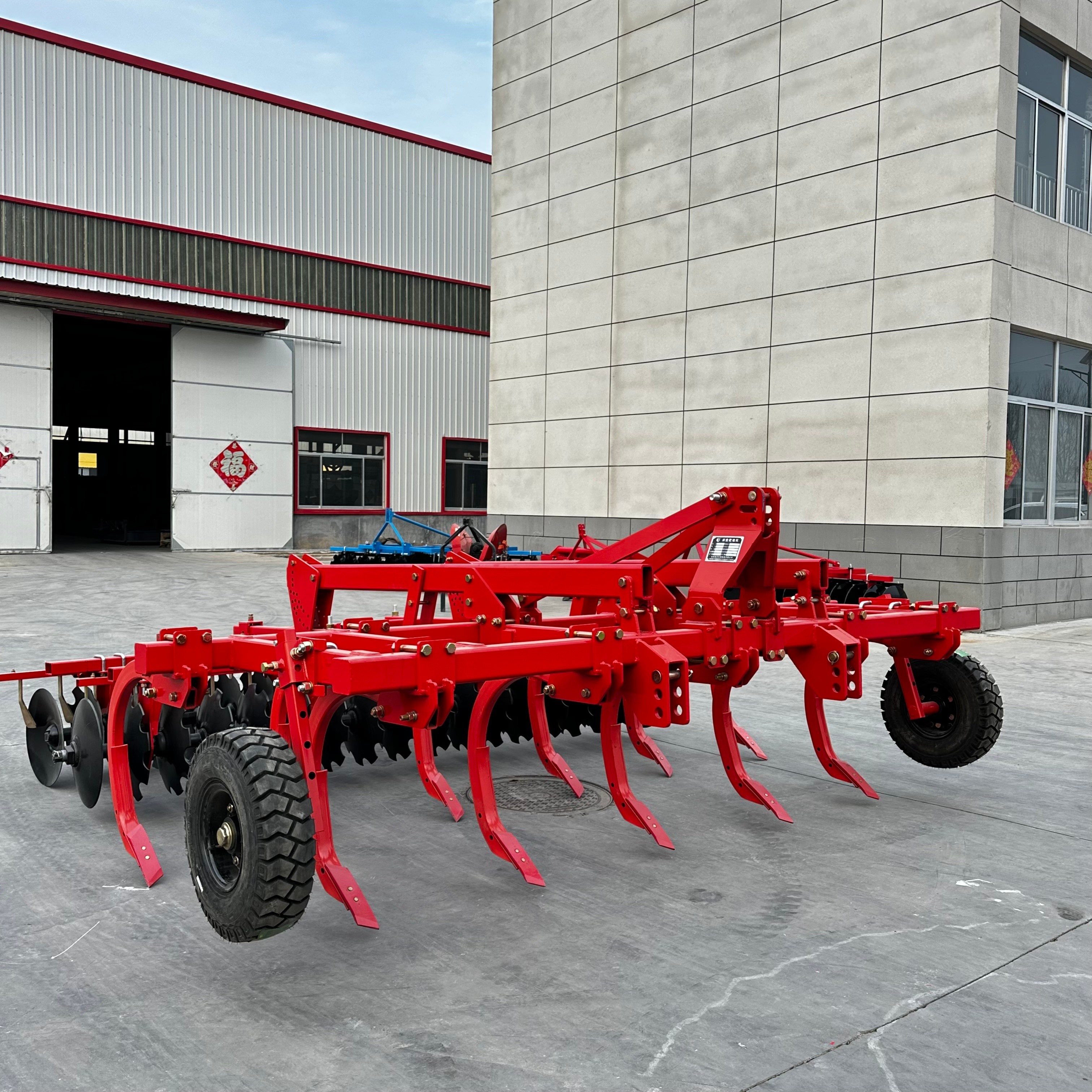 Deep tillage combined with land preparation machine series hydraulic offset heavy duty disc harrow has the high working efficiency , strong capability into the soil, and after plough loosen soil. This harrow can highly adapt to the sticky heavy soil, uncultivated field and those plots of many weeds. It is made of square tubes welded together which ensures simple structure and good rigidity. The harrow is also equipped with hydraulic lifting rubber wheels for convenient transportation and small turning radius, thus the production efficiency and lifetime of the harrow is dramatically improved.